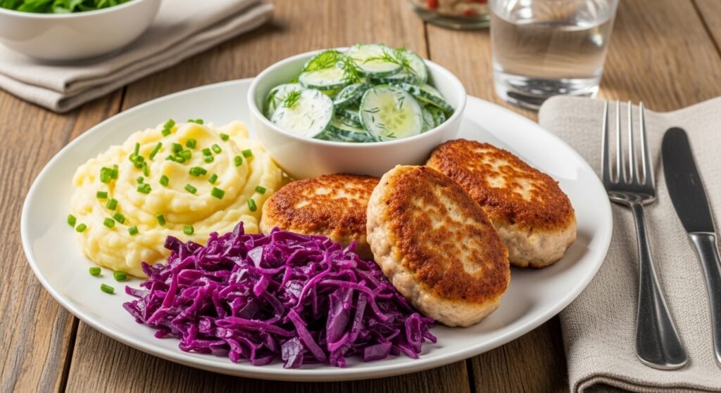 When planning a Main course potatoes boiled baked puréed mashed, I usually start simple. Kotlety Mielone taste best with comfort sides like cooked groats buckwheat hulled barley or traditional dumplings Kopytka Silesian dumplings pyzy. A fresh contrast is important, so I often add mizeria cucumber salad sauerkraut braised fried raw dill pickles fermented veggies steamed veggies to balance the richness. If I want something colorful, I prepare beet salad cooked grated beets lemon juice salt pepper beetroot salad beetroot chutney or a simple green salad vinaigrette garden peas carrots green beans broccoli. Creamy options such as sour cream mashed potatoes chives also work beautifully.